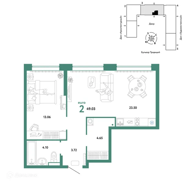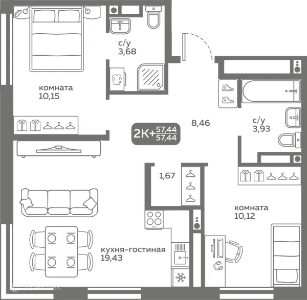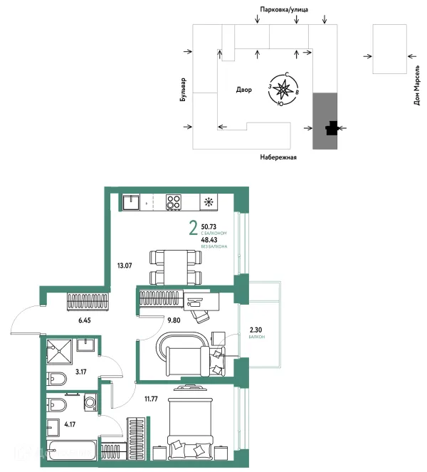 2 комн. квартира в Тюмени в ипотеку от 55 303 руб/месяц