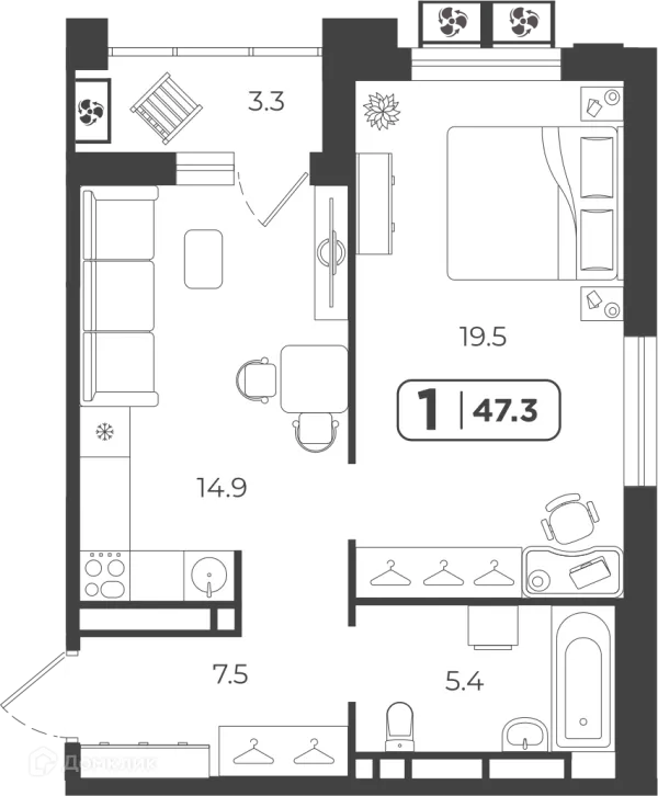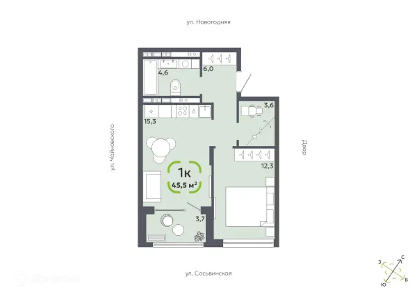 1 комн. квартира в Тюмени в ипотеку от 44 286 руб/месяц