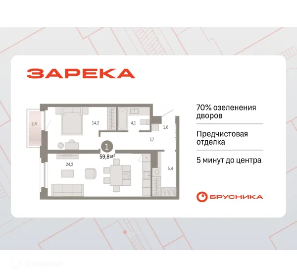 1 комн. квартира в Тюмени в ипотеку от 57 968 руб/месяц