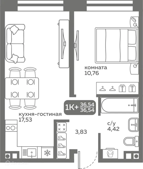 1 комн. квартира в Тюмени в ипотеку от 35 284 руб/месяц