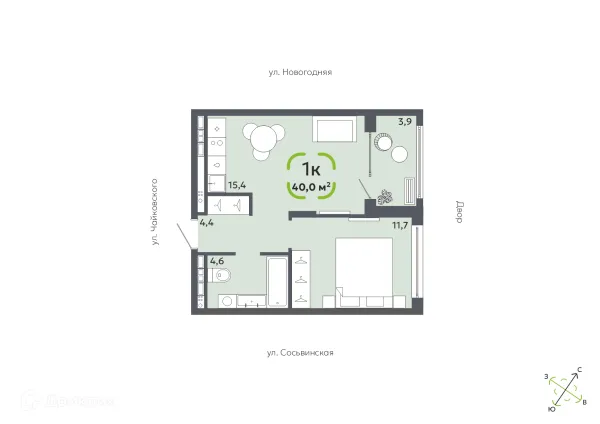 1 комн. квартира в Тюмени в ипотеку от 73 234 руб/месяц