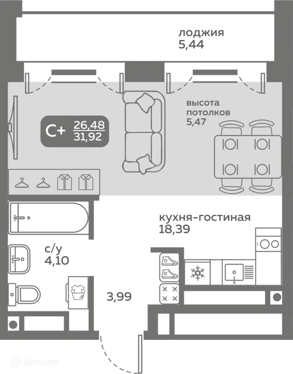 Студия квартира в Тюмени в ипотеку от 28 443 руб/месяц