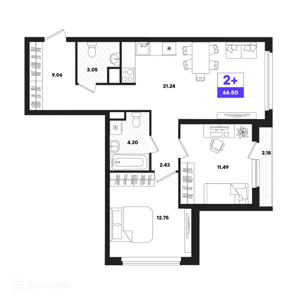 2 комн. квартира в Тюмени в ипотеку от 69 237 руб/месяц