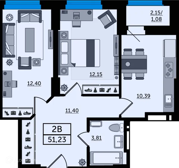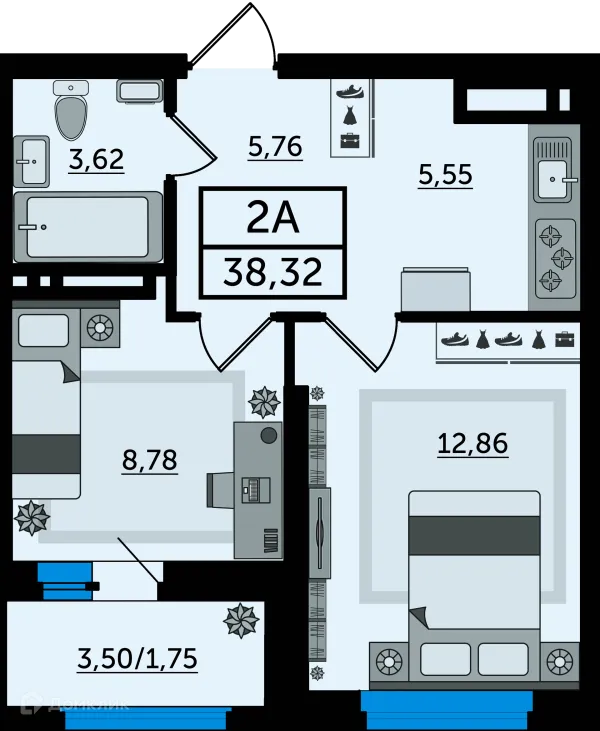 2 комн. квартира в Ростове-на-Дону в ипотеку от 49 802 руб/месяц
