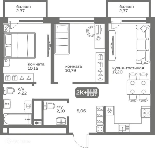 2 комн. квартира в Тюмени в ипотеку от 51 631 руб/месяц