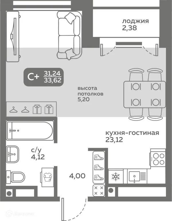 Студия квартира в Тюмени в ипотеку от 42 341 руб/месяц