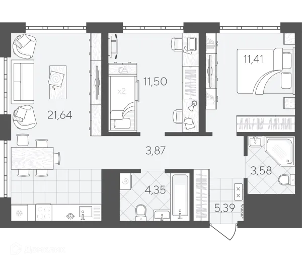 2 комн. квартира в Тюмени в ипотеку от 57 968 руб/месяц
