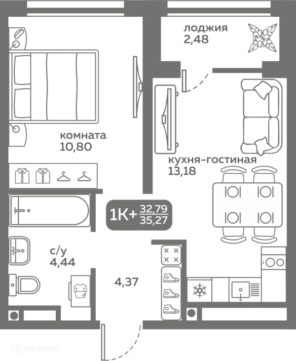 1 комн. квартира в Тюмени в ипотеку от 35 212 руб/месяц