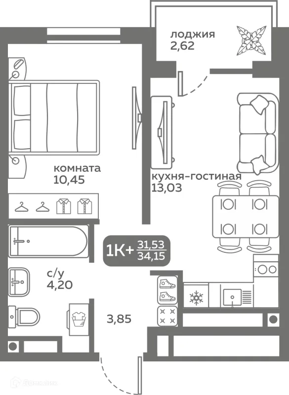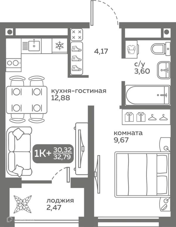 1 комн. квартира в Тюмени в ипотеку от 34 132 руб/месяц