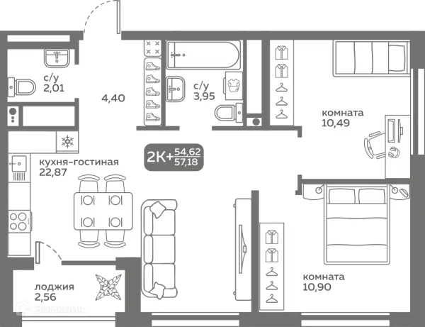 2 комн. квартира в Тюмени в ипотеку от 52 999 руб/месяц