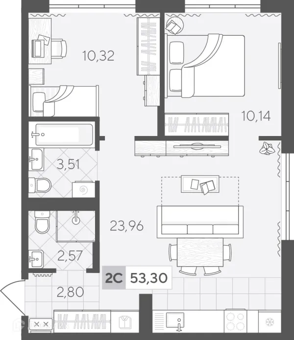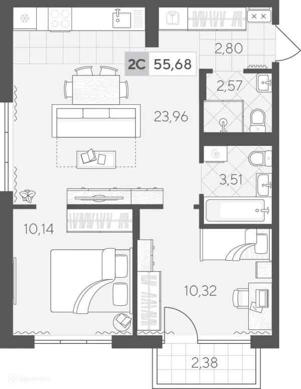 2 комн. квартира в Тюмени в ипотеку от 66 609 руб/месяц