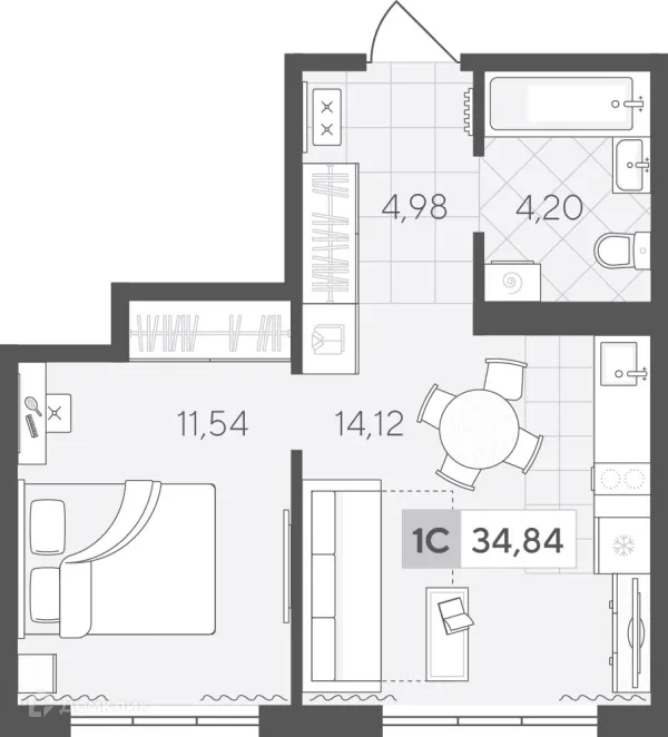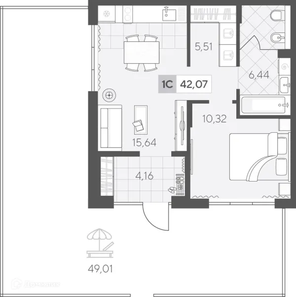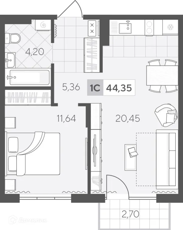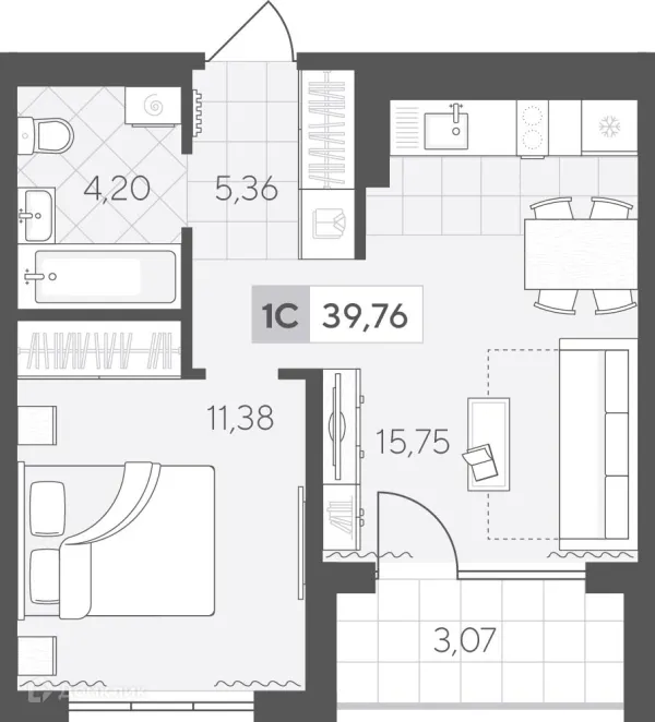 1 комн. квартира в Тюмени в ипотеку от 42 485 руб/месяц