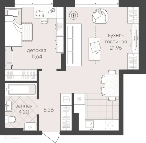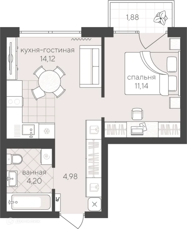 1 комн. квартира в Тюмени в ипотеку от 41 765 руб/месяц