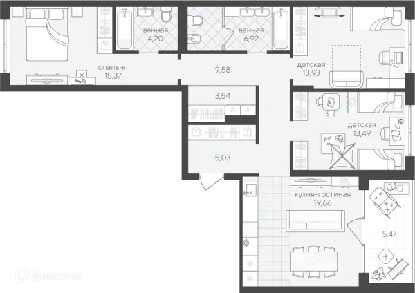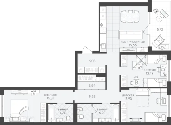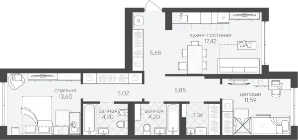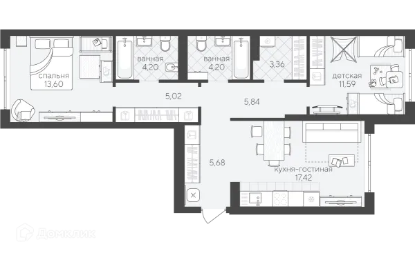 3 комн. квартира в Тюмени в ипотеку от 69 849 руб/месяц