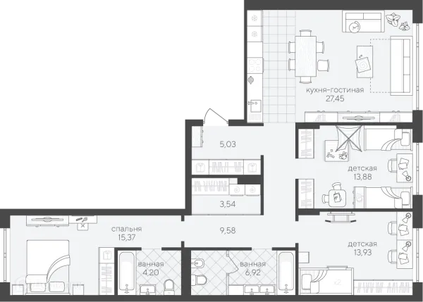 3 комн. квартира в Тюмени в ипотеку от 70 209 руб/месяц
