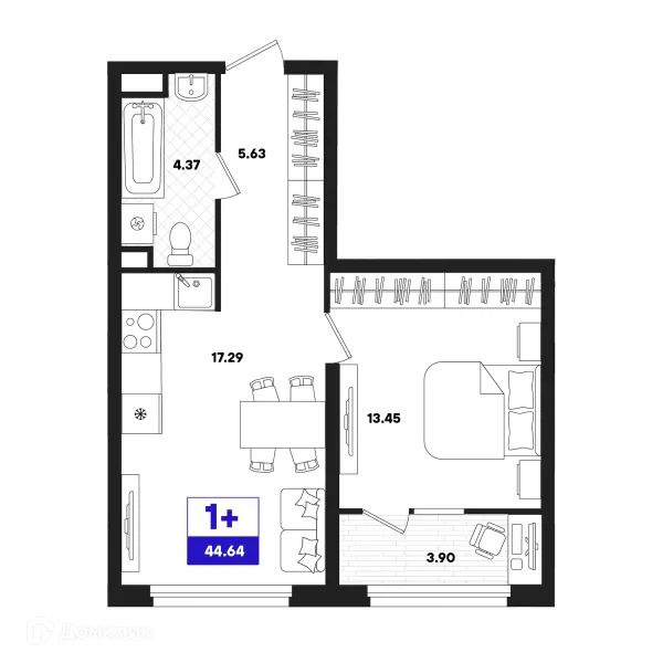 1 комн. квартира в Тюмени в ипотеку от 45 967 руб/месяц