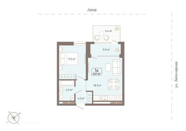 1 комн. квартира в Тюмени в ипотеку от 55 015 руб/месяц