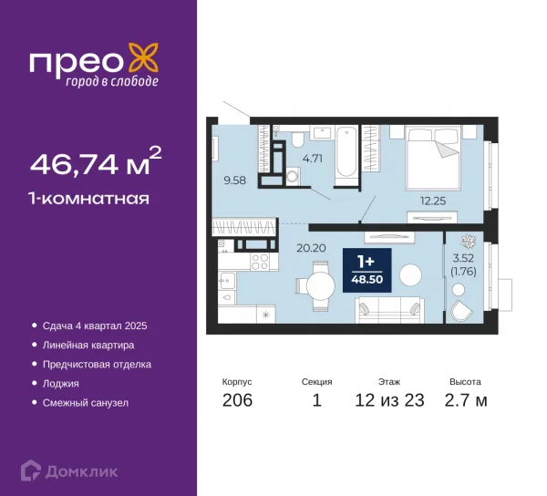1 комн. квартира в Тюмени в ипотеку от 49 308 руб/месяц