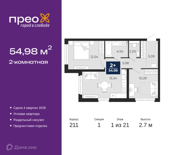 2 комн. квартира в Тюмени в ипотеку от 54 583 руб/месяц