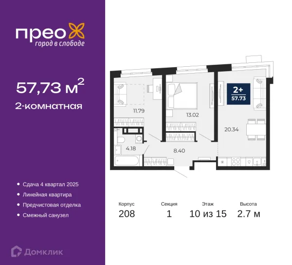 2 комн. квартира в Тюмени в ипотеку от 57 269 руб/месяц